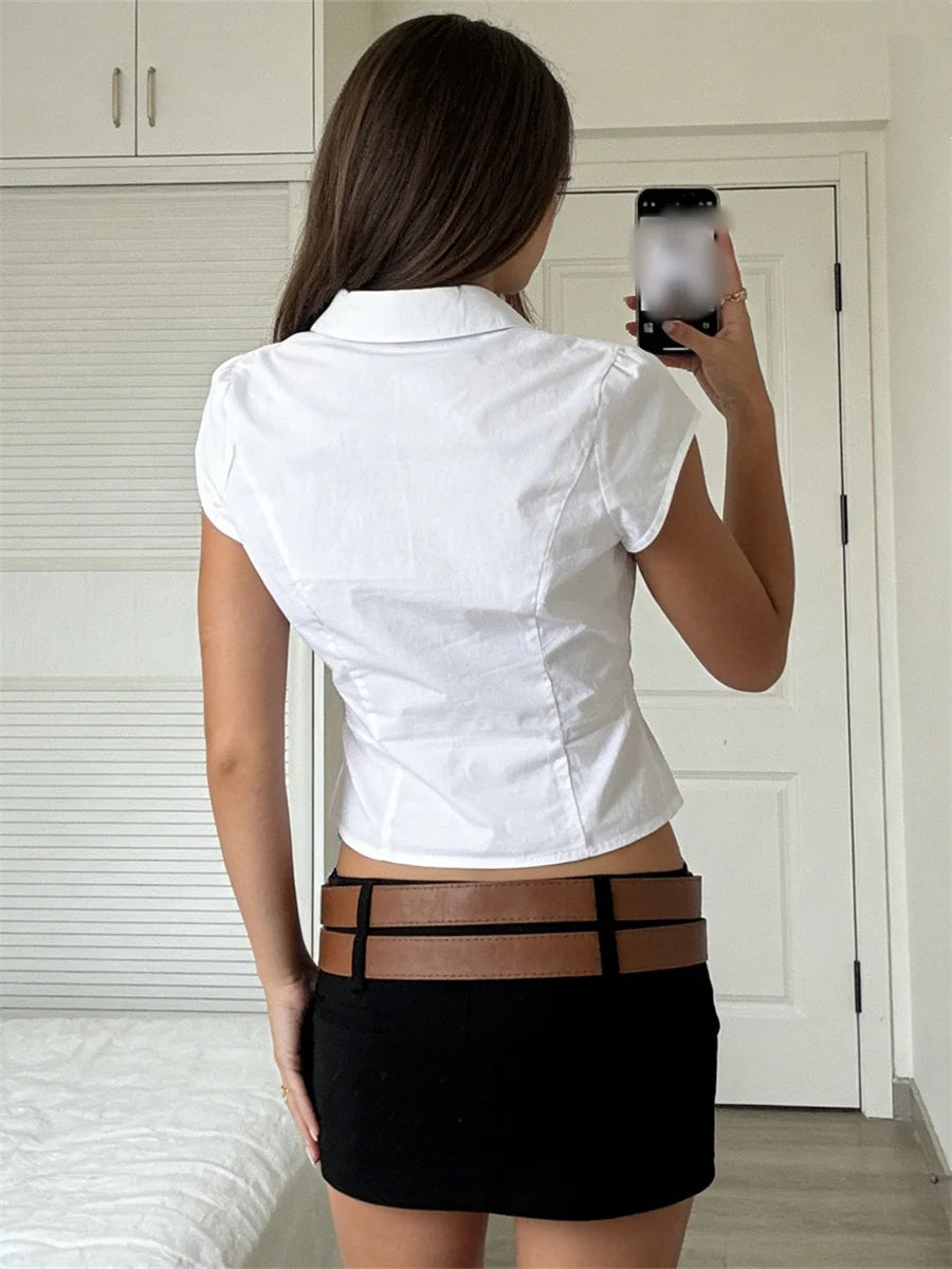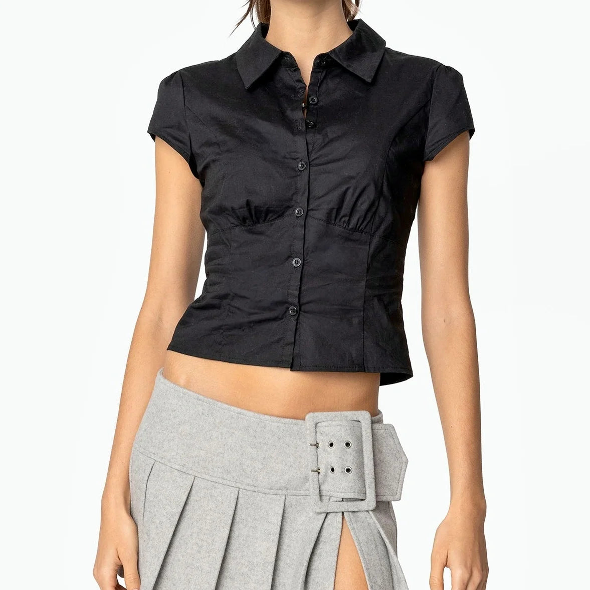 La blusa cropped abotonada perfecta que aporta un toque de frescura sin esfuerzo a cualquier look. No es una básica más—es tu nueva prenda imprescindible que transforma cualquier conjunto de lo común a digno de street style.