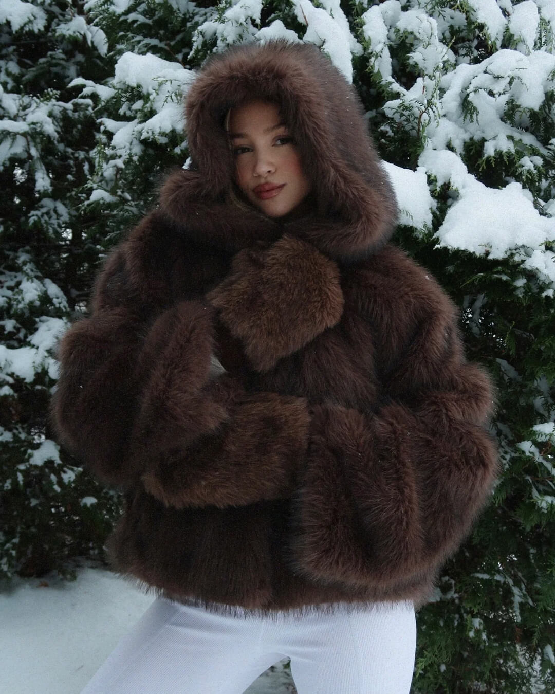Abrigo corto con capucha de piel sintética Ivy