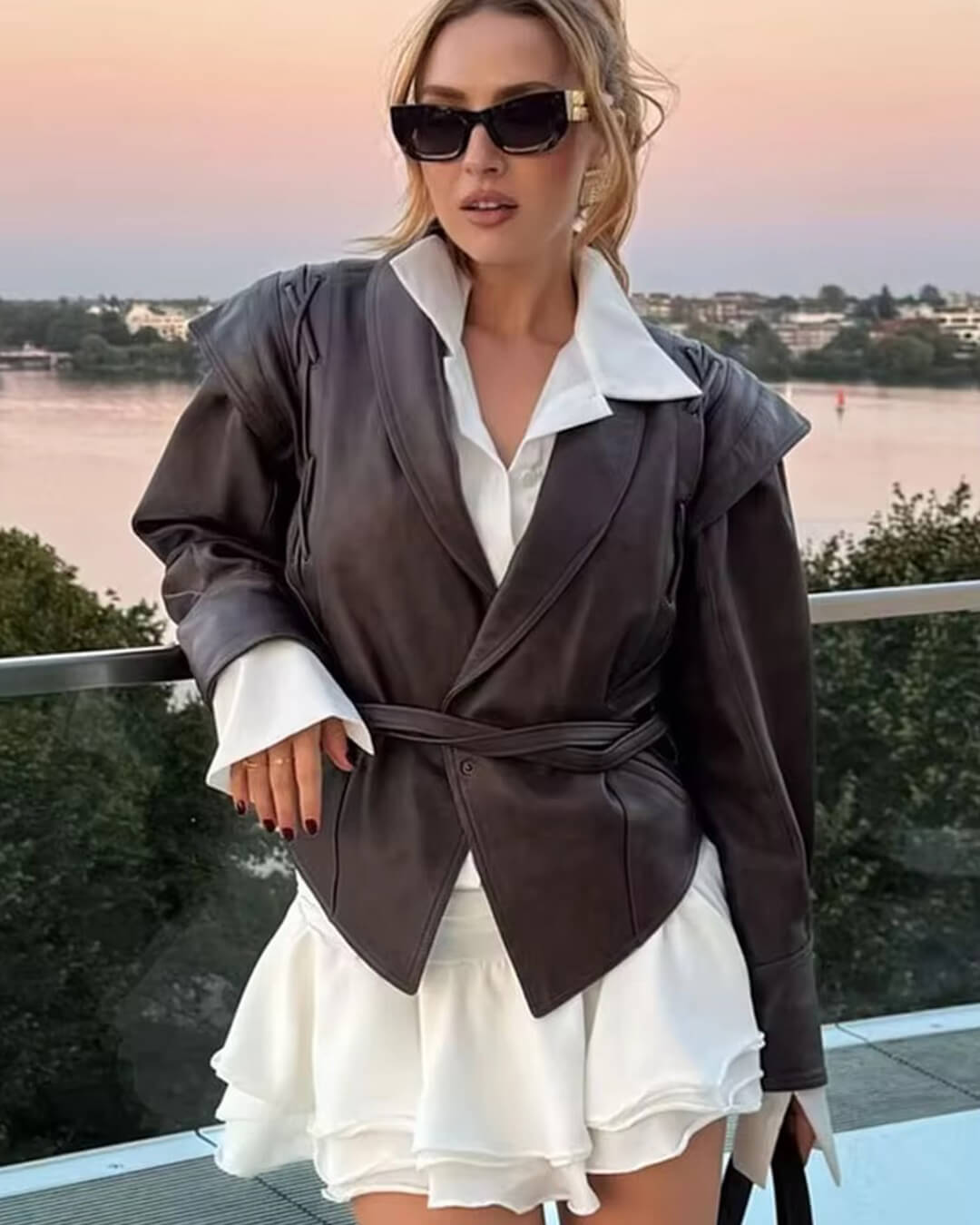 Chaqueta Capa Elegante de Cuello Alto con Cinturรณn Gianna