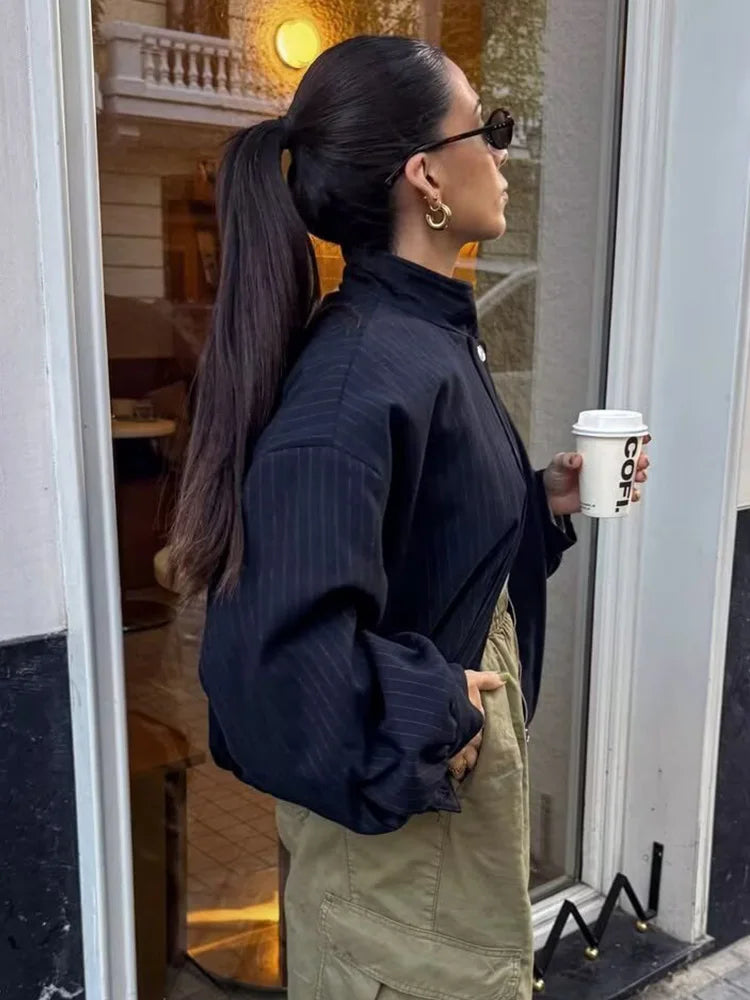 Magnolia Pinstripe Bomber Jacket