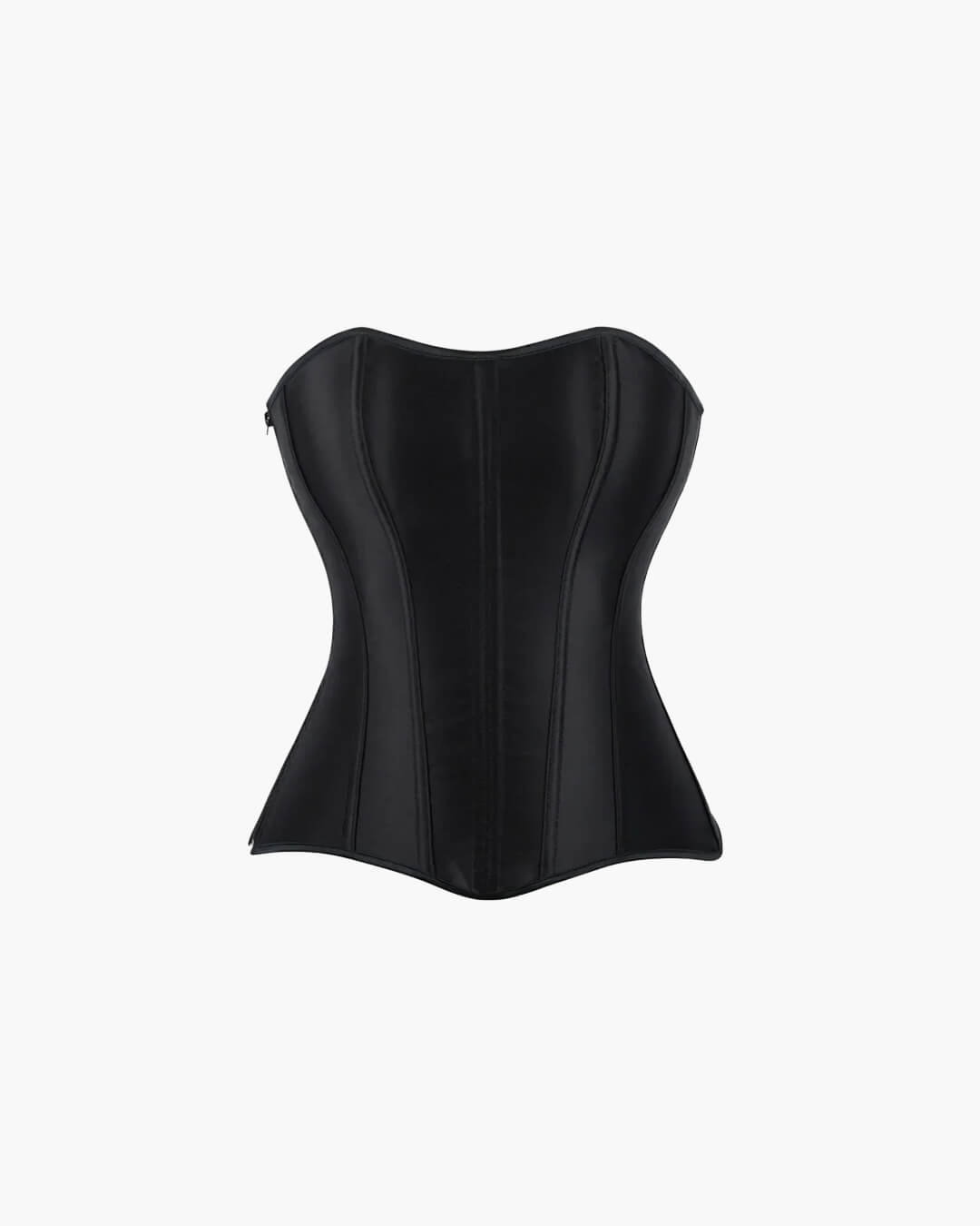 Este impresionante corsé overbust combina la elegancia vintage con un toque moderno. Confeccionado en tela de algodón satinado de alta calidad, presenta un elegante diseño con cordones y una práctica cremallera lateral para ponértelo fácilmente.