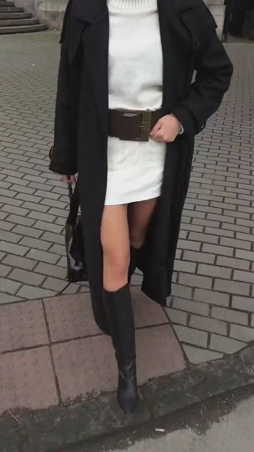 Pronto para o escritório: Usa o casaco Preto ou Cinzento sobre um fato ou saia lápis para um visual profissional e marcante.