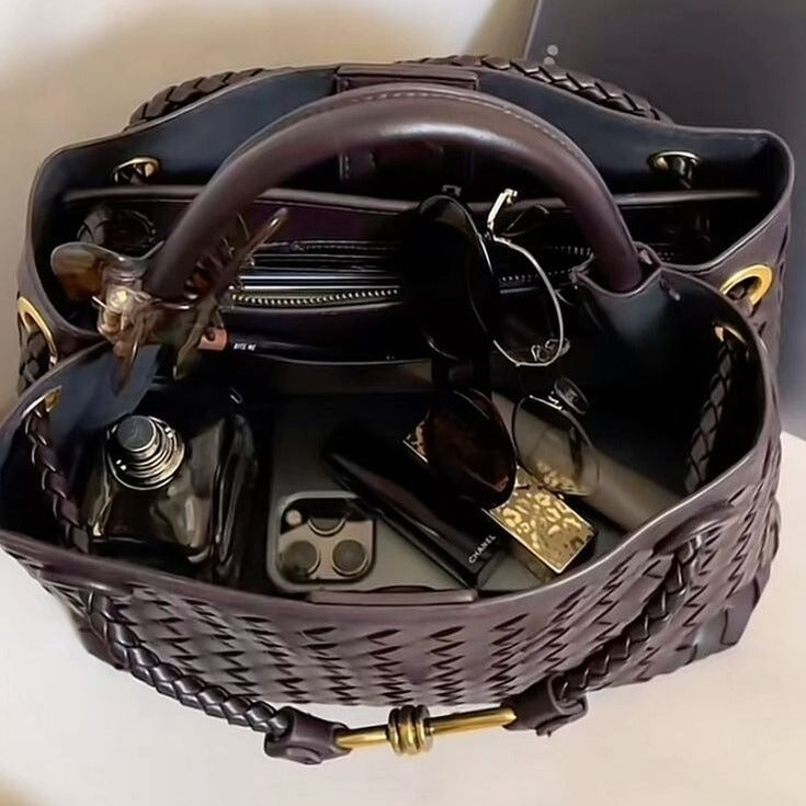 Apresentamos o nosso Saco Lucia Entrançado, uma combinação refinada de elegância, versatilidade e artesanato. Fabricado com couro vegan de alta qualidade, este saco destaca-se pela sua textura entrançada, conferindo um toque sofisticado a qualquer look e promovendo escolhas de moda sustentáveis. Ideal tanto para dias descontraídos como para ocasiões especiais, adapta-se facilmente de um passeio pela cidade a um encontro romântico à noite. Com um design intemporal e interior espaçoso, o Saco Lucia Entrançado oferece estilo e funcionalidade, tornando-se uma peça essencial em qualquer guarda-roupa moderno. Disponível em dois tamanhos para se adaptar às tuas necessidades — seja para um uso diário compacto ou para quem prefere um tote maior com mais espaço. Palavras-chave: saco entrançado, saco vegan, moda sustentável, saco elegante, saco espaçoso, saco moderno.