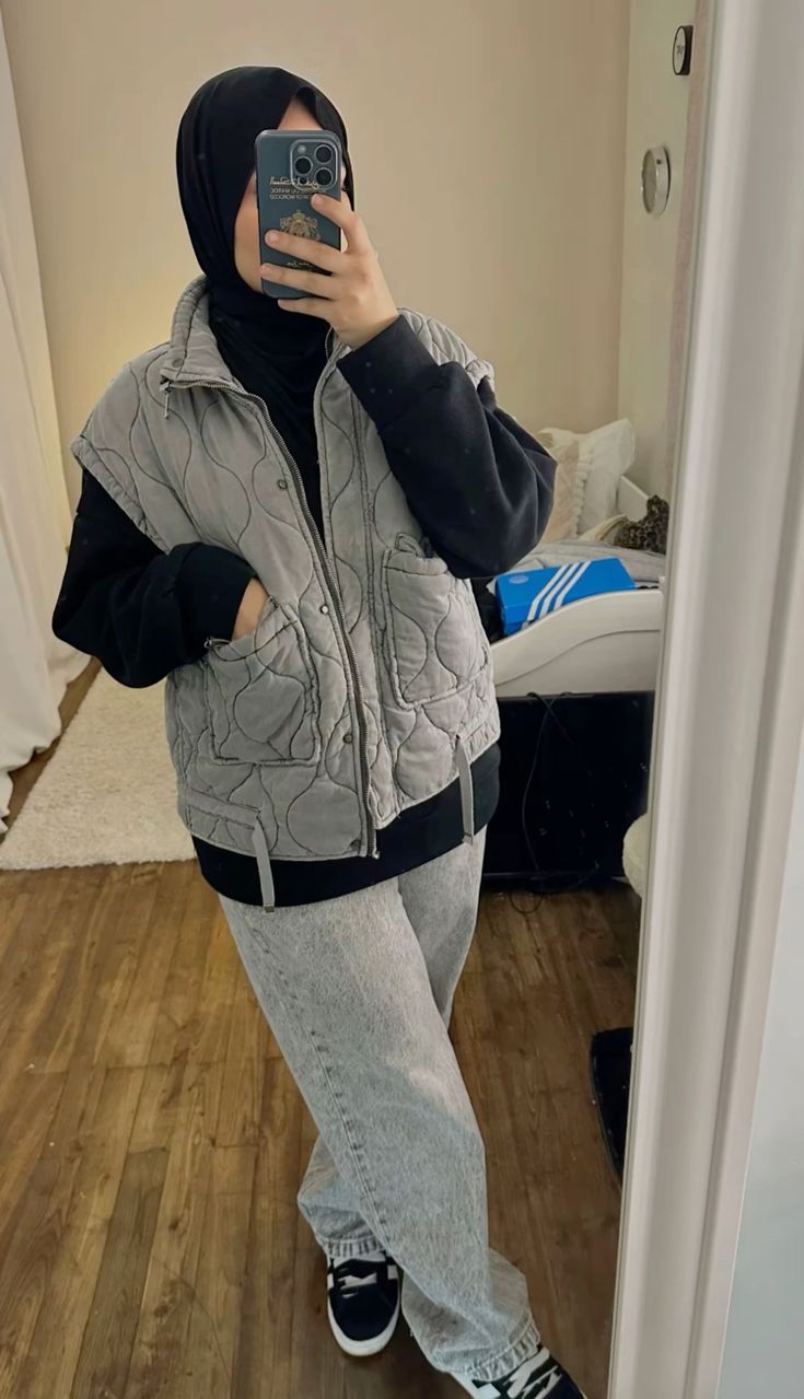 - Toque desportivo: Combina com as tuas leggings preferidas e uma camisola de manga comprida para um conjunto funcional, ideal para passeios ao ar livre ou tarefas diárias em dias de tempo variável.